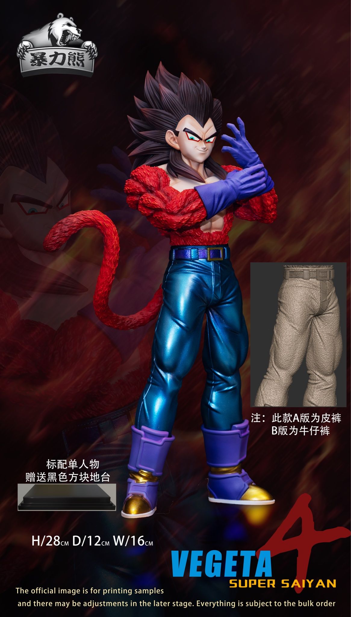 Vegeta: H28 x W16 x D12cm (Bản thường) & H39 x W20 x D20cm (Bản EX)