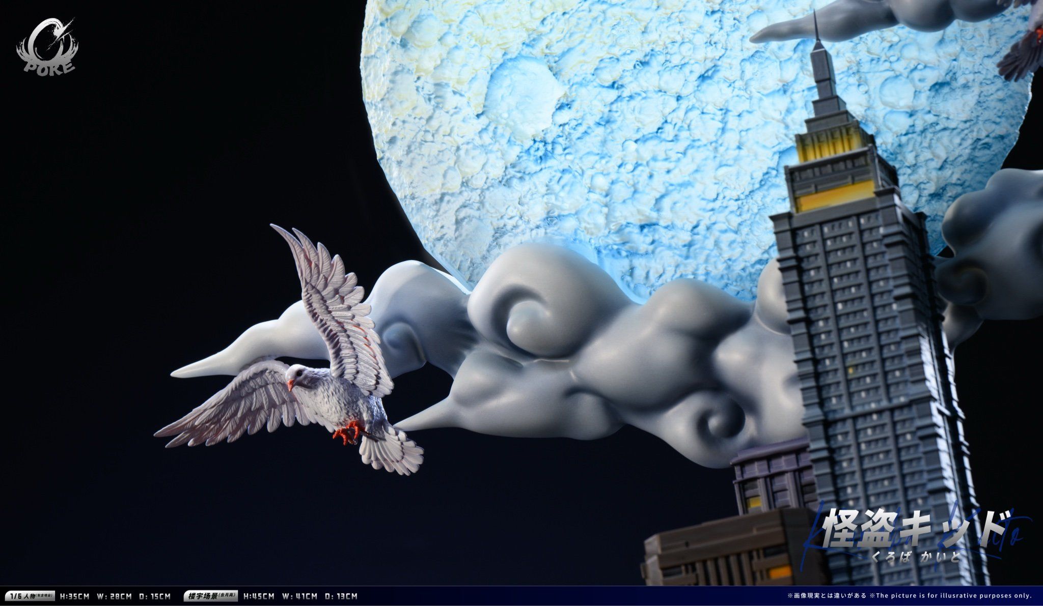 𝐊𝐢́𝐜𝐡 𝐭𝐡𝐮̛𝐨̛́𝐜 (Scale): 1/6 H35 x W28 x D15cm (figure+base) & H41 x W41 x D13cm ( building+moon)